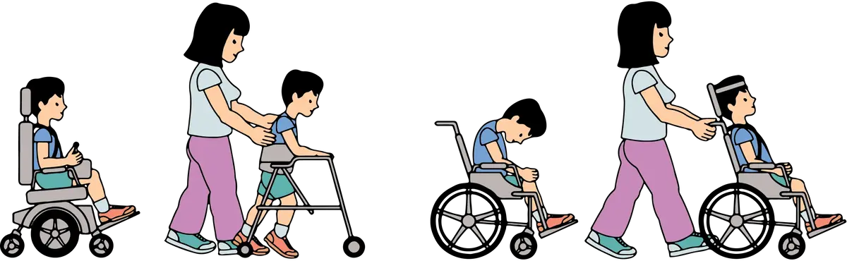- (V) полная зависимость ребёнка от окружающих (перевозка в коляске/инвалидном кресле).
