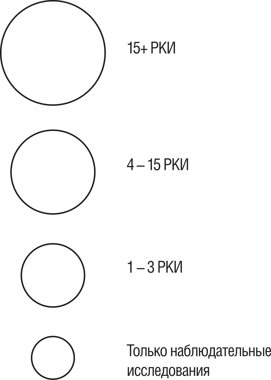 - РКИ — рандомизированные контролируемые исследования (наиболее качественный тип исследований с точки зрения критериев доказательной медицины)